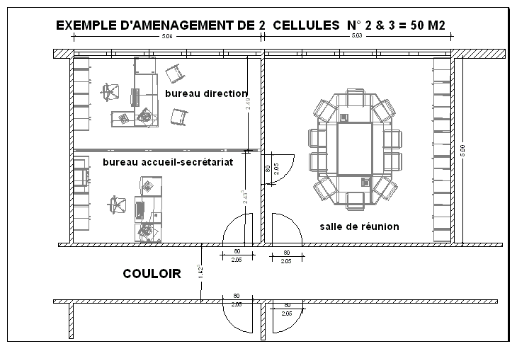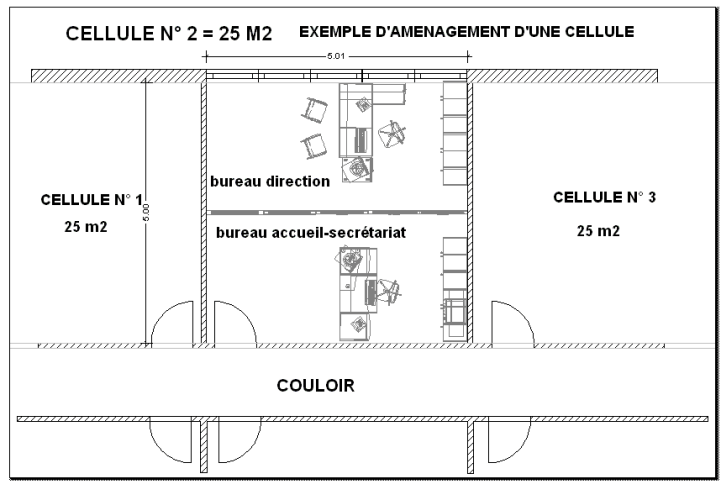 aménagement de deux cellules 25 m² + 25 m² = 50 m²